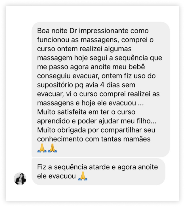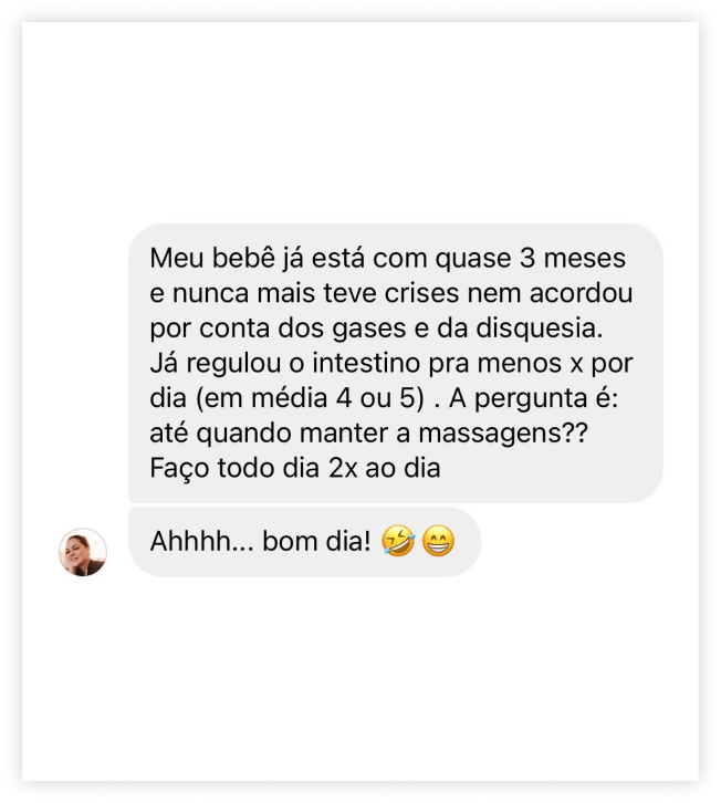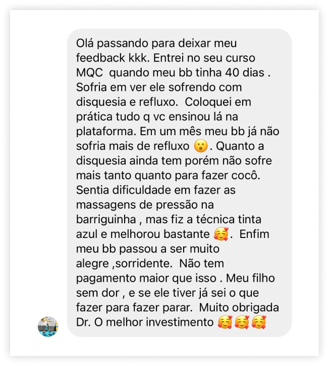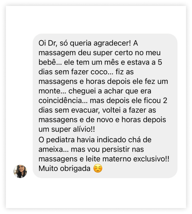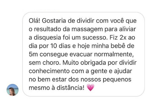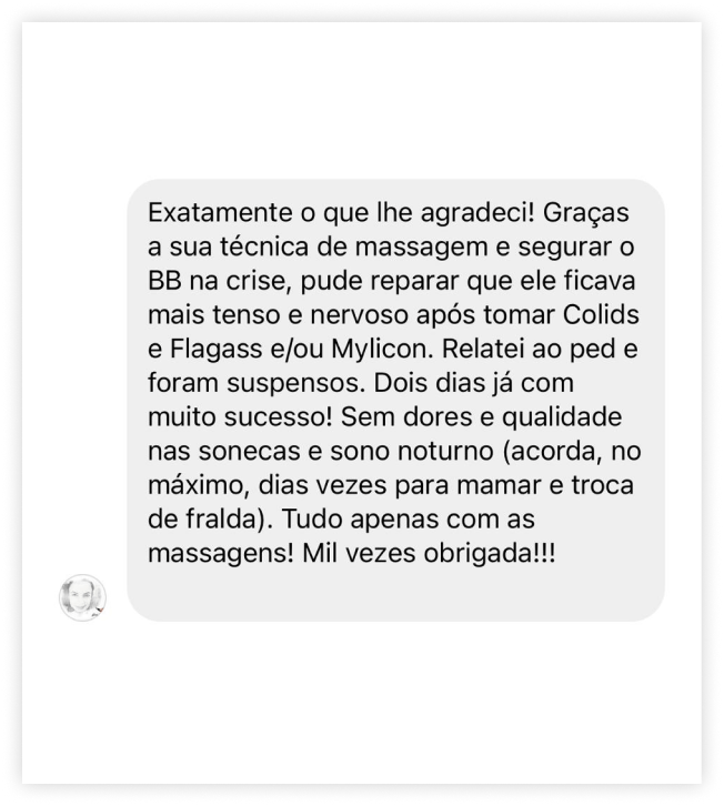 Tenho relatos de mães que observaram melhoras nos primeiros 3 dias de massagens e outras na segunda semana do tratamento.