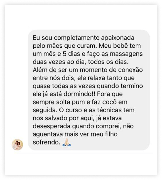 Mas calma, mãe, não se preocupe. Você é perfeitamente capaz de tirar essas dores do seu filho e é por isso que eu estou aqui, para te mostrar como você pode auxiliar o processo de cura do seu bebê com as suas próprias mãos.